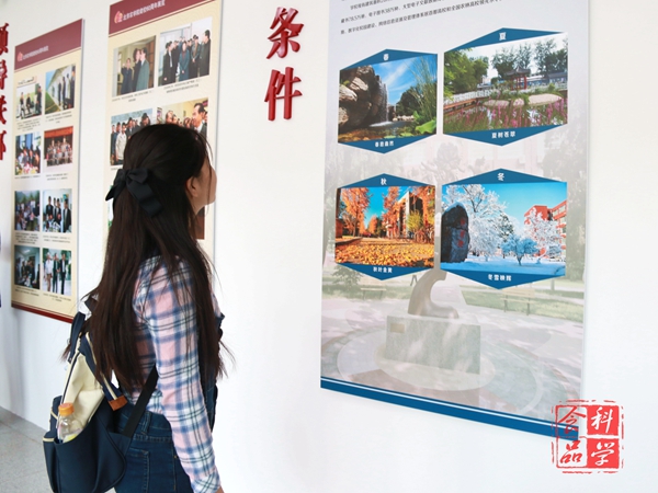 随着讲解员的介绍,大家了解到,学校科研团队承担科技项目颇多,科技成果丰硕,学术交流频繁,新生们对北京农学院科研团队也有了更加深入的了解。同时,我校社会服务工作积极展开,大力推广志愿服务,让学生积极参与社会实践工作。得知学校积累的志愿学时之多,新生们都想为学校点个赞。