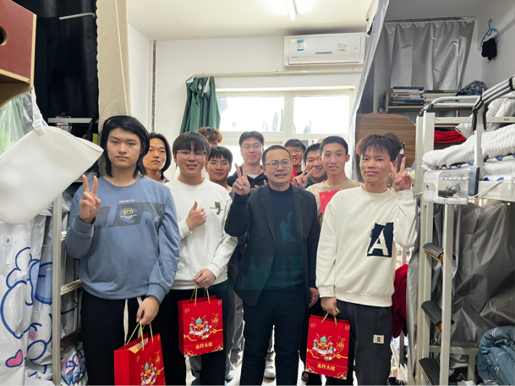 闻海洋来到学生公寓9号楼男生宿舍,详细询问了解了同学们的生活和学习情况,就同学们普遍关心的职业生涯规划方面的问题与大家进行了深入沟通交流。闻海洋对于同学们的未来规划给予了充分肯定和鼓励,解答了同学们的各种疑问和困惑,并强调:早日开展职业生涯规划非常必要,无论是将来考公、考研、进企业,还是自主创业都要早做规划、早做打算、尽快行动。学生宿舍是同学们长期生活居住的地方,平时一定要搞好宿舍卫生,学生党员、团学骨干、宿舍长要发挥榜样引领作用,带领大家一起创造一个干净、整洁、舒适的生活居住环境。