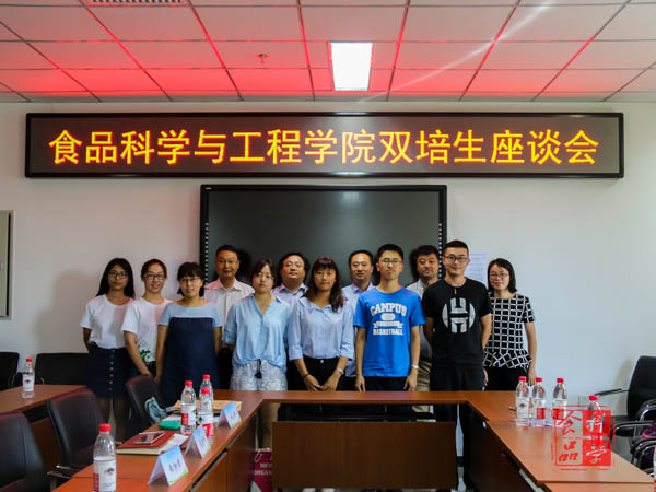 在食品楼218召开了2017级双培生座谈会。4名双培生与其家长,党总支书记党登峰,院长张红星,副院长丁轲、马挺军和王雪,班主任王芳,15级双培生沈亚美和朱佳乐出席座谈会,会议由副院长丁轲老师主持。