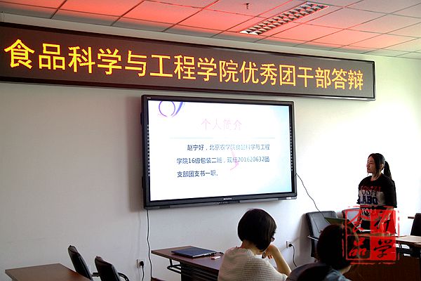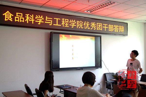 分别进行优秀团干部和团支部评选答辩活动。学院团委书记刘海燕、辅导员张明婧、食品质量与安全学生党支部副书记董晨阳、团委副书记秦翠芳、学生会副主席夏绍琪、葡协会长李昊及团委全体部长担任评委。学院各团支部委员与会。