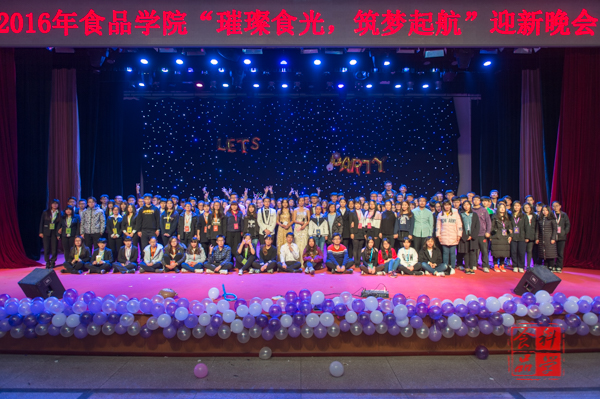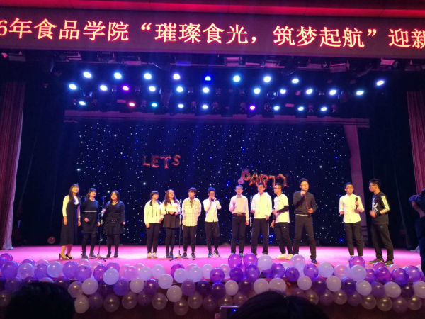 于礼堂举办“璀璨食光 逐梦启航”迎新晚会。学院副院长党登峰,团委书记刘海燕,辅导员张明婧莅临晚会现场。礼堂中温馨的布置营造了良好的活动氛围。