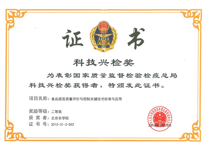 日前,2015年度国家质检总局“科技兴检奖”获奖结果公布,香港六合彩开奖结果现场直播官方 卢大新教授参加申报的项目“食品感官质量评价与控制关键技术标准与应用”荣获2015年度国家质量监督检验检疫总局“科技兴检奖”二等奖。获奖主要完成单位:中国标准化研究院,北京农学院,中粮营养健康研究院。