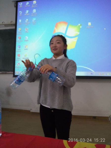 三月的特色团日活动。在活动期间,支部同学自行组成小组,动手将自己身边收集到的废物加以利用,发挥出它们潜在的价值。在活动中,各小组向大家展示本组的劳动成果,有的组将废鞋盒做成收纳盒,有的组将用光的洗发液瓶做成了笔筒,还有的同学则用空水瓶制成了简易晾衣架……