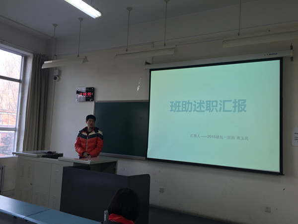 2015级新生班助共12名,全部为学院2013级本科生。12名班助中有10位为中共党员, 11位为学生干部。在本次述职会中,全体班助以PPT的形式从工作总结、个人感悟、工作计划等方面对一学期来的工作进行了分析、总结。同学们利用生动的PPT模板,15级学生的活动、获奖的照片等,图文并茂,将一学期的工作进行了梳理。有的同学还分析了班级一些常见问题的出现原因,有的同学结合小案例分享解决一些常见问题的处理办法。总结会进一步促进了后续工作开展,加强了班助之间的沟通、学习。