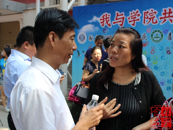 (校党委书记郑文堂,校长王慧敏等校领导走访学院迎新工作站)
