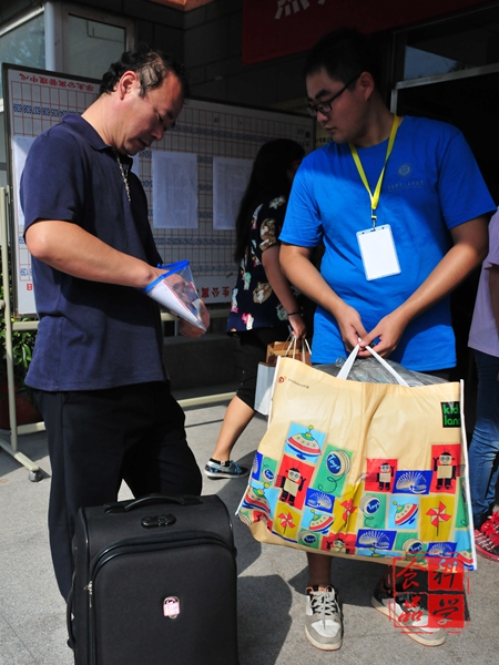 随着报到新生越来越多,志愿者们也都忙碌了起来,很多志愿者没有吃午饭,在报到区与宿舍间来来往往好几趟。然而,他们的面庞上没有丝毫的疲惫,反而精神抖擞,面带笑容地迎接每一位新生,得到了学生及家长的一致赞扬。