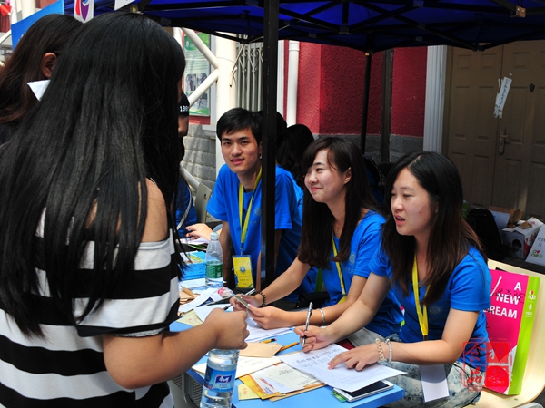 志愿者们早早地来到了学院报到处前,宿舍楼门前也有志愿者们在那里等候着新生的到来。在每一位新生来到陌生的报到处前,志愿者们都井井有条地引导着新生做好报到的一系列手续。并接过新生们的行李,带着他们前往相应的宿舍楼。在途中,志愿者们详细地介绍了学校布局、生活起居的注意事项以及学校各个社团的相关情况。对于学生提出的问题,他们也都一一耐心解答,并很快成为了新的朋友。
