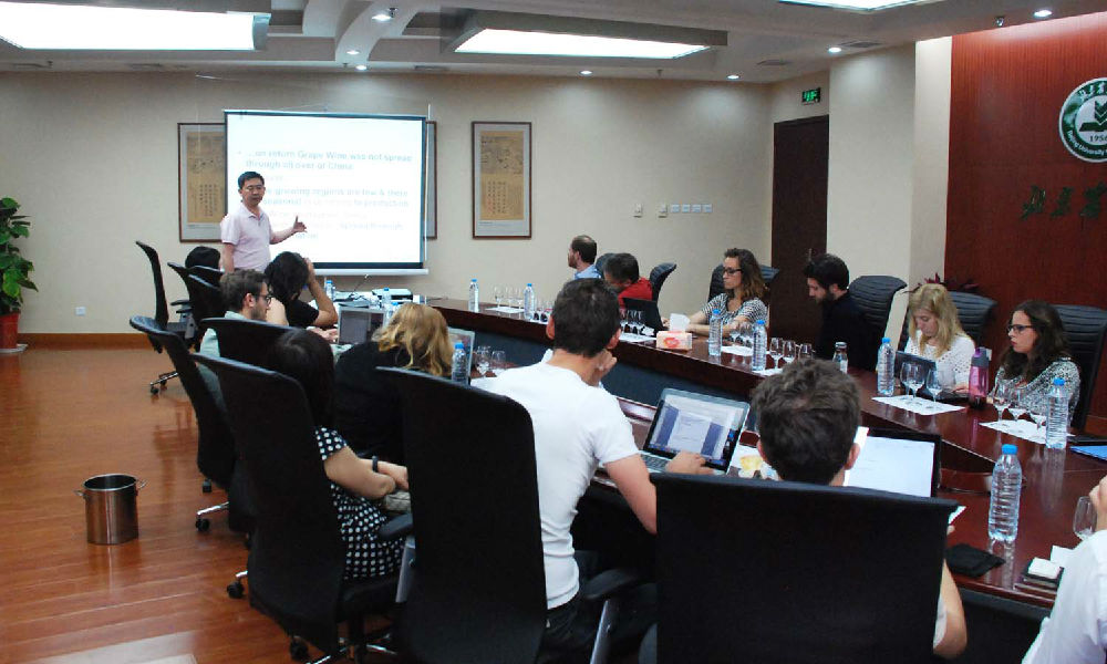 北京农学院为第27届OIV MSc葡萄酒管理硕士班学员北京此行的第一站。北农葡萄酒工程技术中心李德美老师通过翔实的数据和丰富的图片就中国葡萄酒的历史,产区分布,产区气候特点,中国葡萄酒生产和销售情况进行了详细讲解,并对学员们关心的中国葡萄酒现状及中国消费者对葡萄酒的认识等问题与学员进行了深入交流。