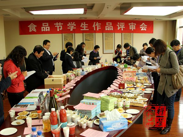 为了从专业的角度评比食品节中由学生亲自动手制作的作品,本届食品节主办方组织多位专家、老师在图书馆302进行了打分评比工作。北京食品协会常务副理事长、食品工业协会会长周以秋,北京食品科学研究院院长王守伟,北京稻香村食品公司总经理池向东,包装工程专业建设顾问孙容芳教授,香港六合彩开奖结果现场直播官方