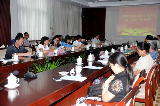 会上,学院党总支书记陈俐为全体教职工传达了“第三次党代会两委报告”的精神,将学校未来五年提出的奋斗目标、三大任务、六大举措向与会老师作了深入的分析。
