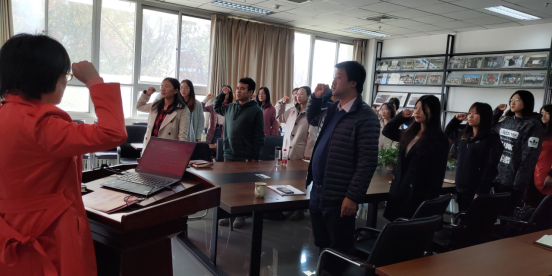 最后,党总支副书记、副院长王雪带领听课的师生党员重温了入党誓词,字字铿锵有力,勉励党员同志们不忘入党初心和使命,继续努力奋斗。