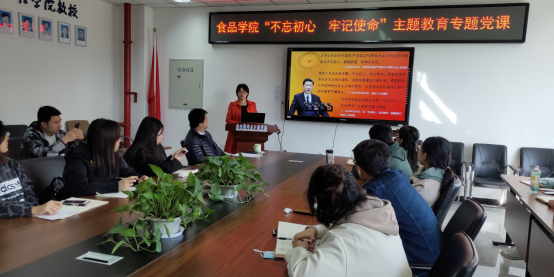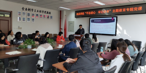 副院长丁轲和党总支副书记、副院长王雪在食品楼218会议室为包装工程本科党支部和研究生第二党支部师生党员讲授“不忘初心、牢记使命”主题教育专题党课。