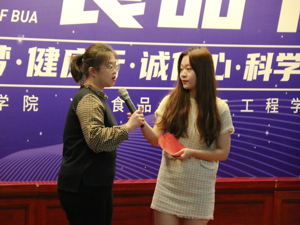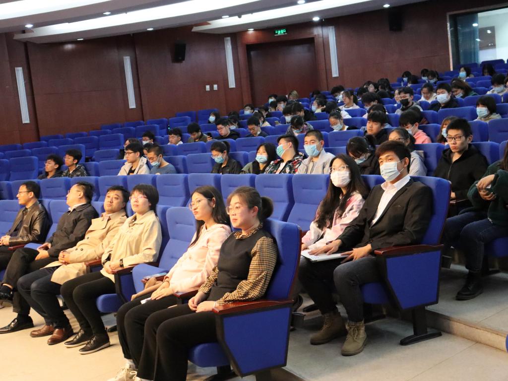 党总支书记党登峰,副书记、副院长王雪,副院长丁轲、马挺军,办公室主任张巍,教学秘书袁烁,辅导员帕孜力古丽·肉苏力,第13届食品节竞赛获奖代表和2020级全体新生。报告会由学院18安全2班学生白天琪主持。