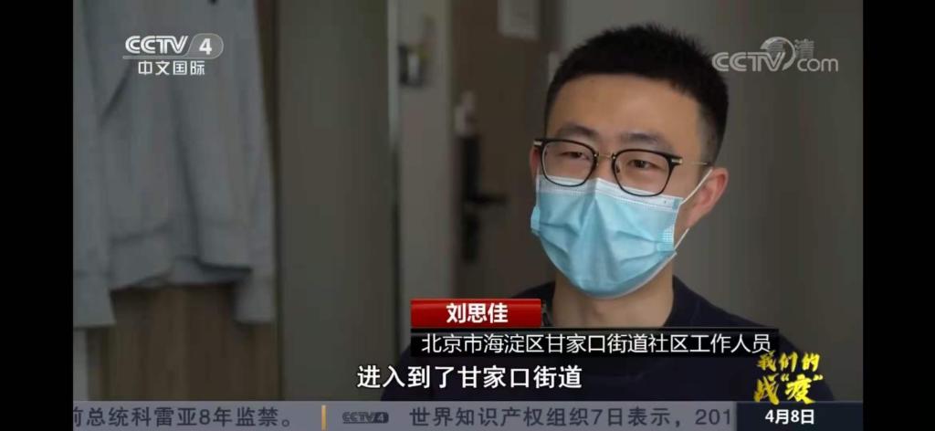 接着,19届硕士研究生校友,现在海淀区甘家口街道办事处工作的校友刘思佳,通过视频展示了自己在疫情防控一线转运接待入境人员和湖北返京人员的工作场景。虽然刚入职,对疫情也充满恐惧,但刘思佳还是主动请缨,深入一线抗疫。事迹受到甘家口街道办事处的充分肯定,并被中央电视台在4月8日《我们的战“疫”》栏目播出。