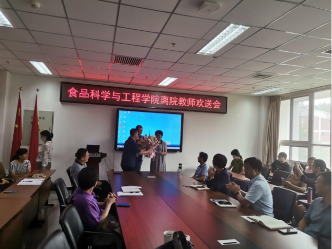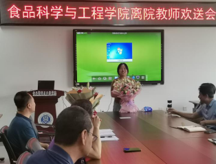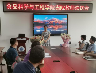 大会上,学院还欢迎了酿酒工程系张欣珂、实验员姜天依等两位新老师。组织了离院教师欢送会。张院长代表学院分别向卢大新、徐艺青等两位退休老师,党登峰、王芳(小)、毛洋、帕孜力古丽·肉苏力等四位离院教师献花并致欢送辞。六位教师抚今追昔,回忆了在学院的美好时光,表达了对学院和老师们的憧憬和祝愿,欢送会在热烈的掌声中圆满结束。