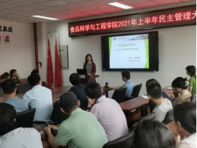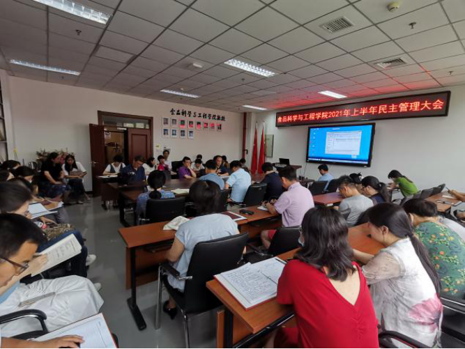 在食品楼218会议室召开了2021年上半年民主管理大会暨离院教师欢送会。学院全体教师、离院教师参加会议,党总支副书记、院长张红星主持会议。