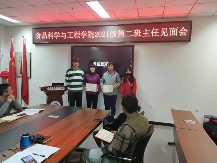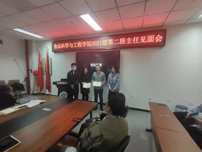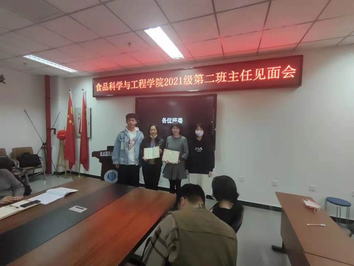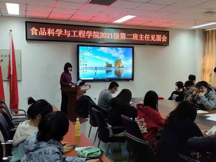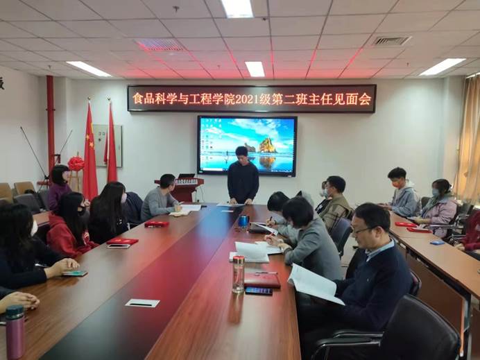 于11月12日中午12:30,在食品楼218会议室召开了第二班主任见面会。见面会由辅导员赵静老师主持,2021级5个新生班班长、团支部书记和班主任、第二班主任参会。