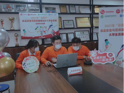 11月27日,2021年“百胜杯”食品安全与营养健康知识大学生竞赛北京分站赛成功举办,我校学生代表队同来自中国农业大学、北京林业大学、北京工商大学的同学们展开激烈的角逐。