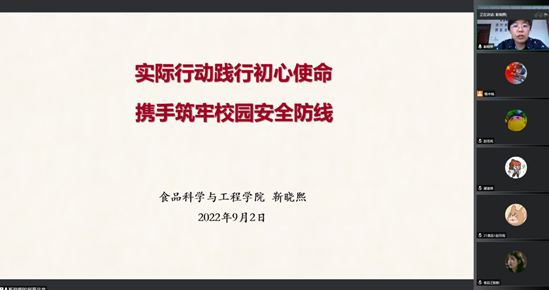 召开全体学生党员大会,学院党总支书记靳晓熙围绕“实际行动践行初心使命,携手筑牢校园安全防线”主题,为学生党员和入党积极分子上开学第一堂党课。