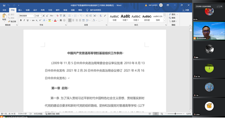 交流研讨后,各基层党支部还围绕《中国共产党普通高等学校基层组织工作条例》《中国共产党统一战线工作条例》《党员干部教师应知应会知识手册》进行了集体学习。