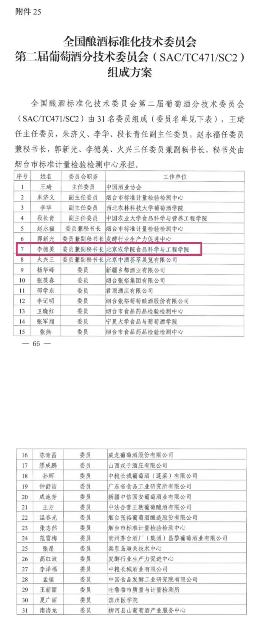 酿酒工程系主任李德美任委员兼副秘书长。