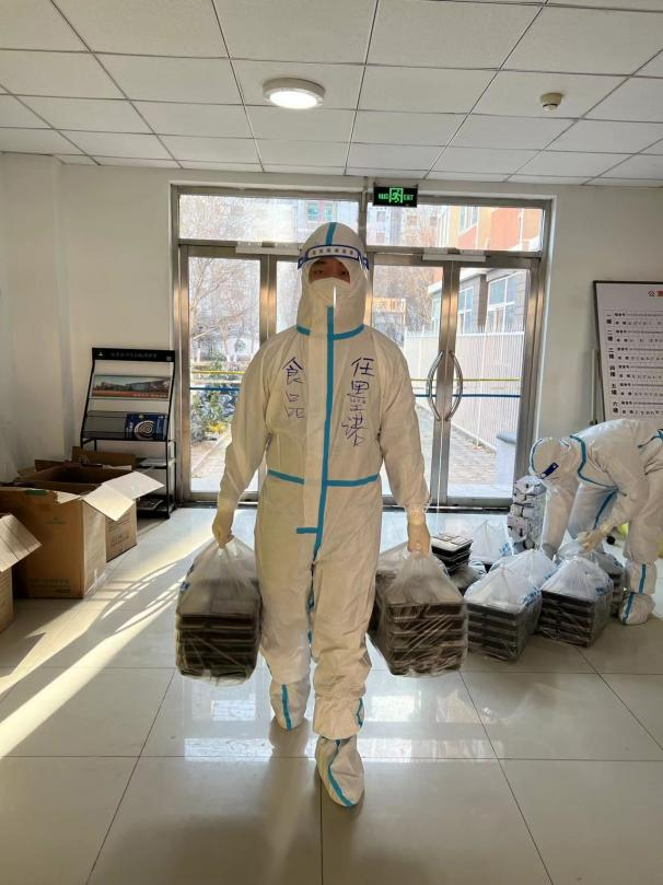 学院党总支副书记、副院长王雪,团委书记罗蕊在深夜接到校园出现疫情的通知后,放下各自家里的两个孩子,没有丝毫犹豫,连夜收拾换洗衣物,隔天便入驻学生宿舍8号楼。“起床了,早餐来了”“开水打来了,5分钟后开门取,小心别烫着”“戴好N95,咱该测核酸了”“妈妈式”的碎碎念里饱含她们对学生最深的爱。为保证学生们能吃上热乎的三餐,她们每天上上下下无数趟,十几公斤的水,咬牙扛着爬楼梯......