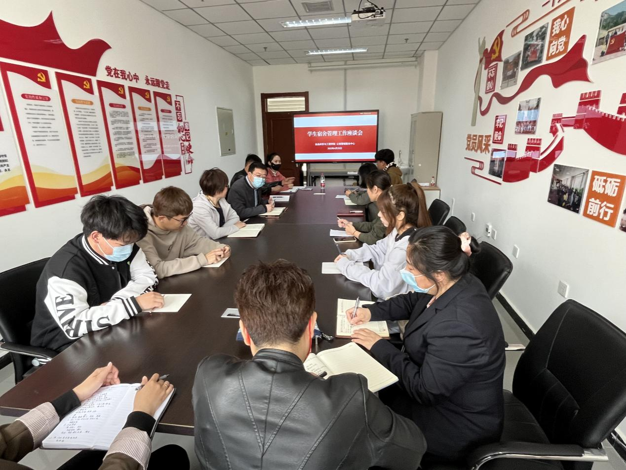 学工队伍教师与公寓管理中心老师和楼长,就日常管理和驻楼工作进行了深入的讨论,共同探讨如何提升学生宿舍管理效能和服务水平。