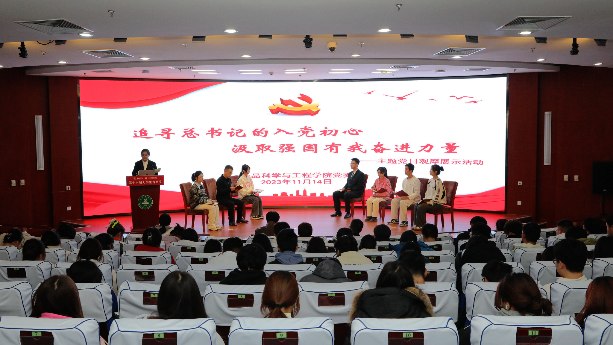 党委在图书馆报告厅举办了“追寻总书记的入党初心 汲取强国有我奋进力量”主题党日观摩活动。学院党委书记靳晓熙、学生工作负责人闻海洋、团委书记罗蕊、各年级辅导员、党员代表和大一学生参加活动。主题党日活动由酿酒工程本科生党支部书记魏晓峰主持。