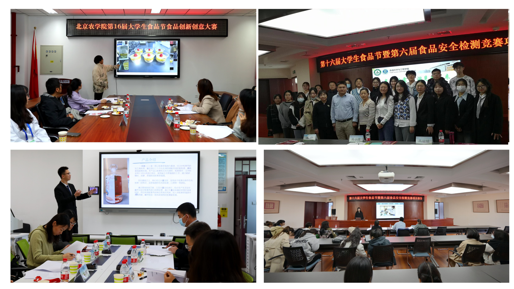 第十六届大学生食品节举办过程中,学院开展了学科实践竞赛活动。竞赛环节设置了“创新创意酒类产品竞赛”、“食品安全检测竞赛”、“创新创意食品竞赛”三个单元。竞赛现场各参赛小组精心展示参赛作品,竞赛活动达到了“以赛促学、以赛促练”的效果”。