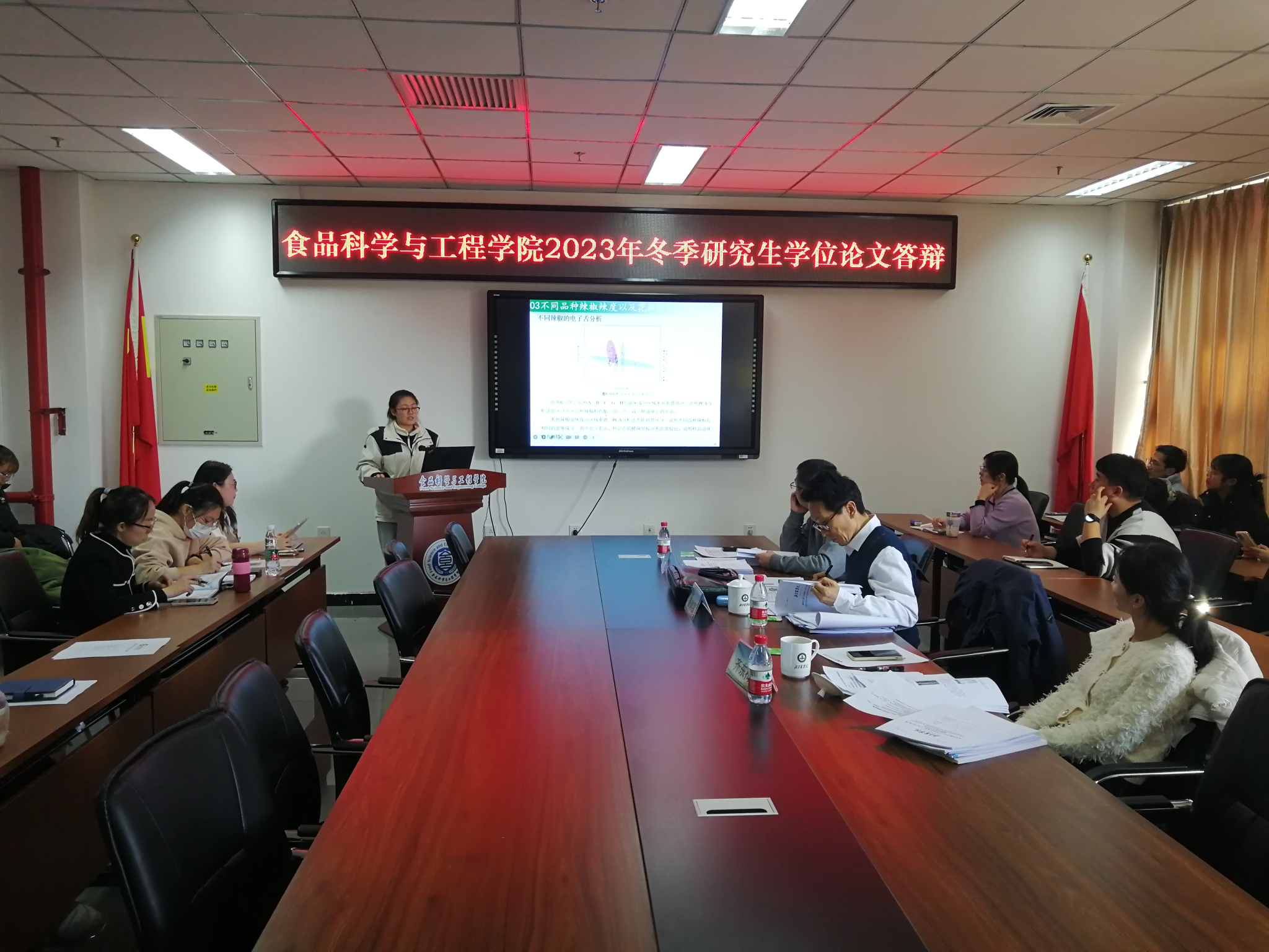 于2023年11月29日下午2点在食品楼218进行了冬季硕士研究生学位论文答辩工作,相关导师和研一的同学旁听了此次答辩。