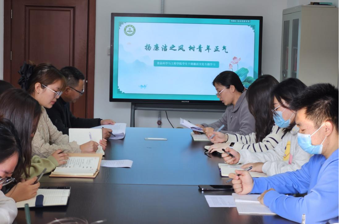 团委面向各学生组织主要负责人开展廉洁文化专题学习会,学生工作负责人闻海洋老师参会。