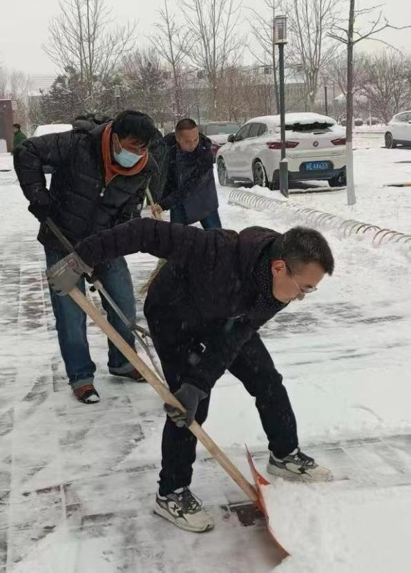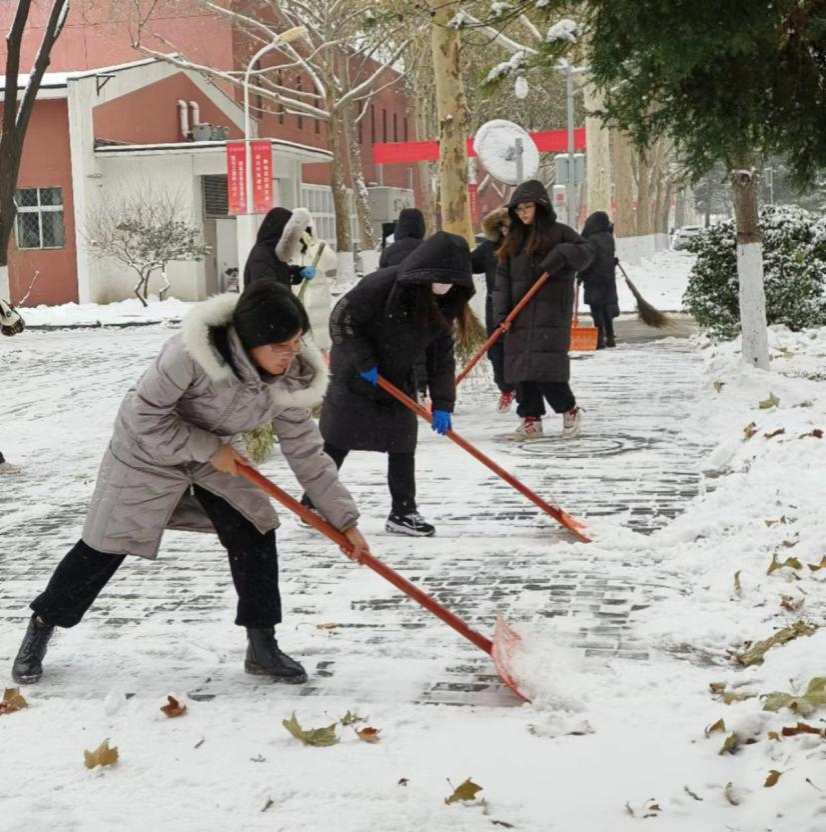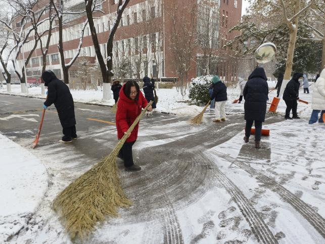 教师、党员、入党积极分子40余人以雪为令,闻雪而动,投身校园扫雪活动中,清理路段积雪。