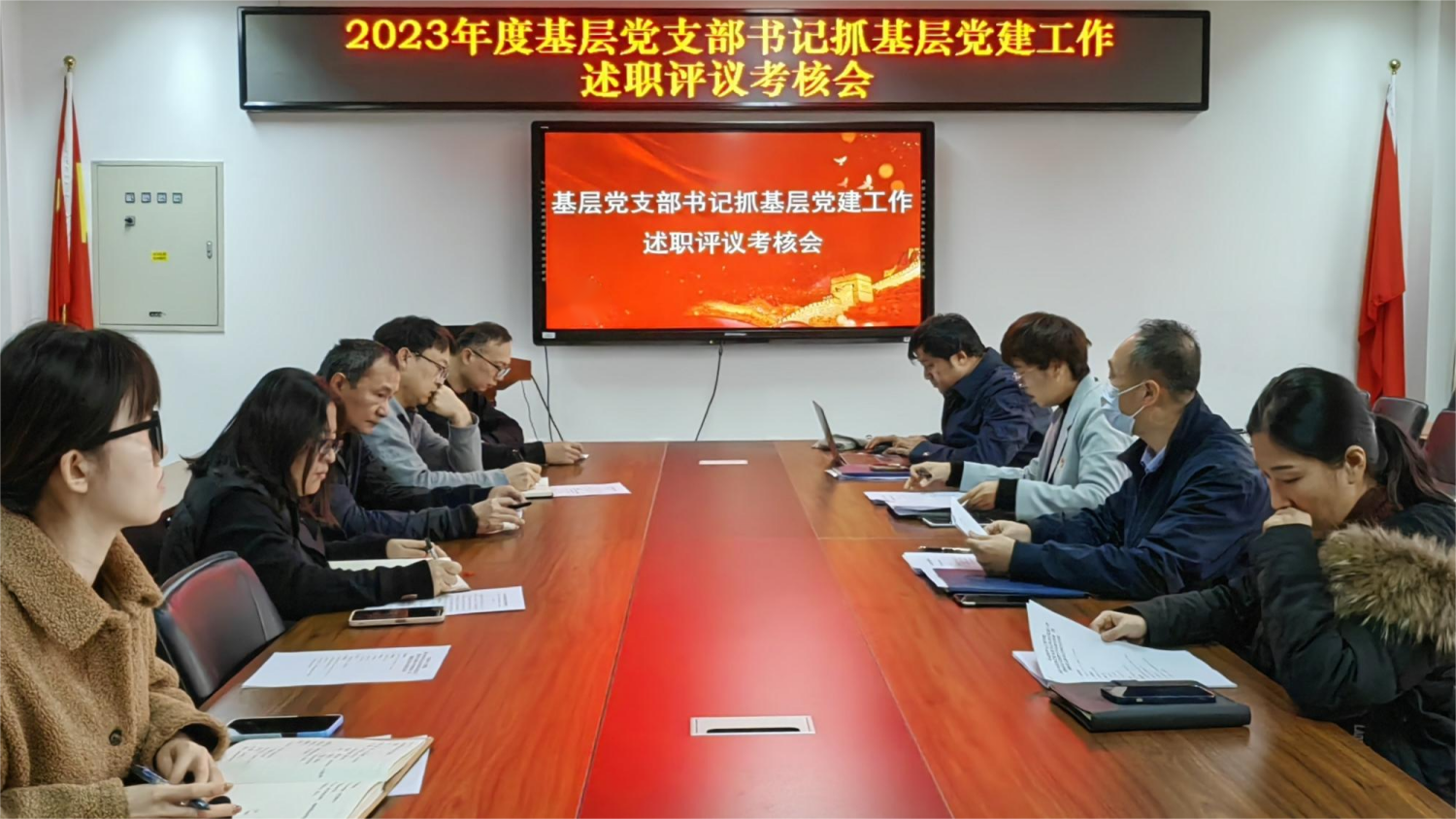 召开2022年度基层党支部书记抓基层党建工作述职评议考核会,会议由学院党委副书记、院长张红星主持,全体党委委员、党支部书记及师生代表参加会议。