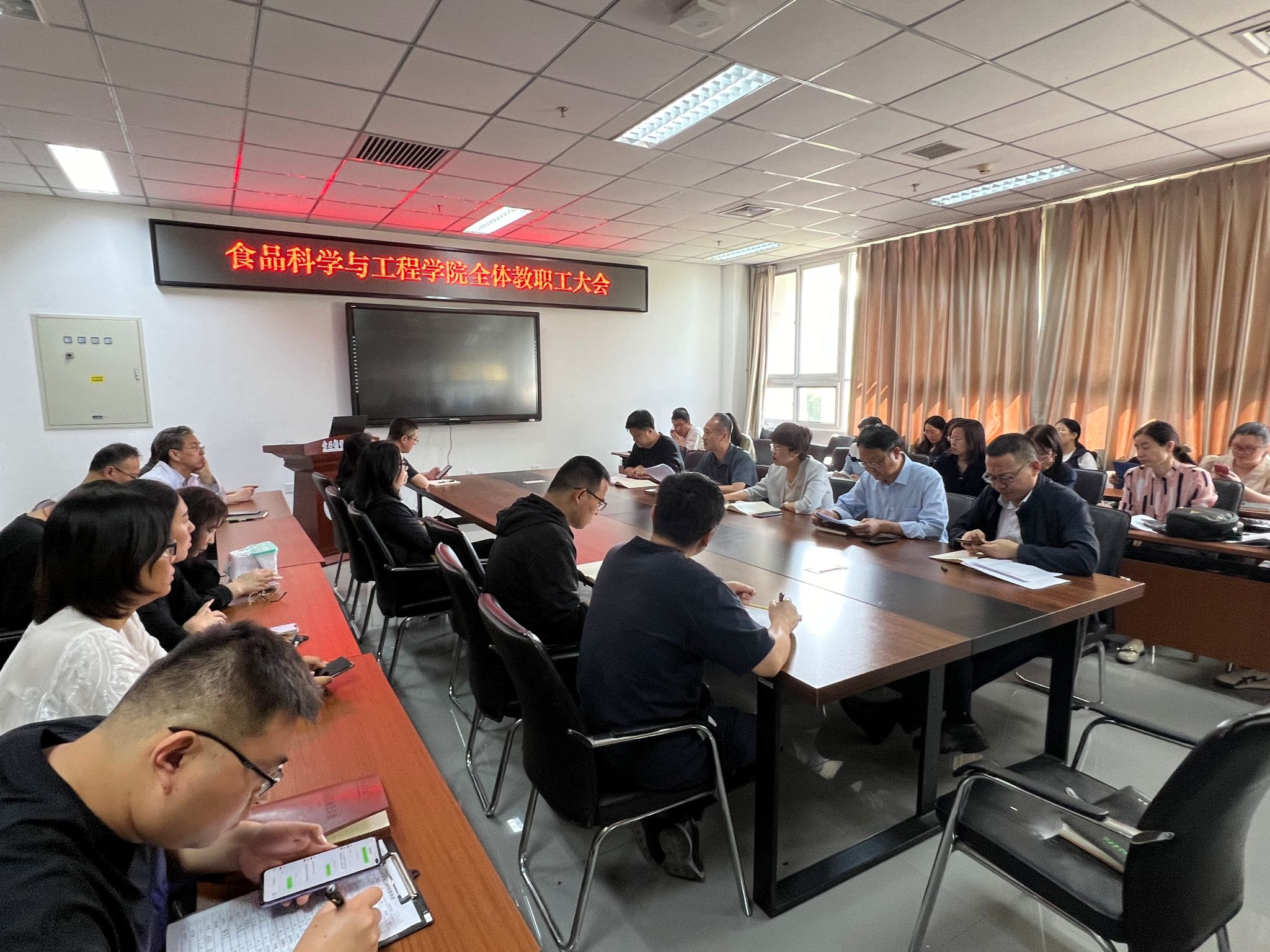 召开本科教育教学审核评估入校考察工作部署会。全体教职工参加会议。会议由学院党委书记靳晓熙主持。