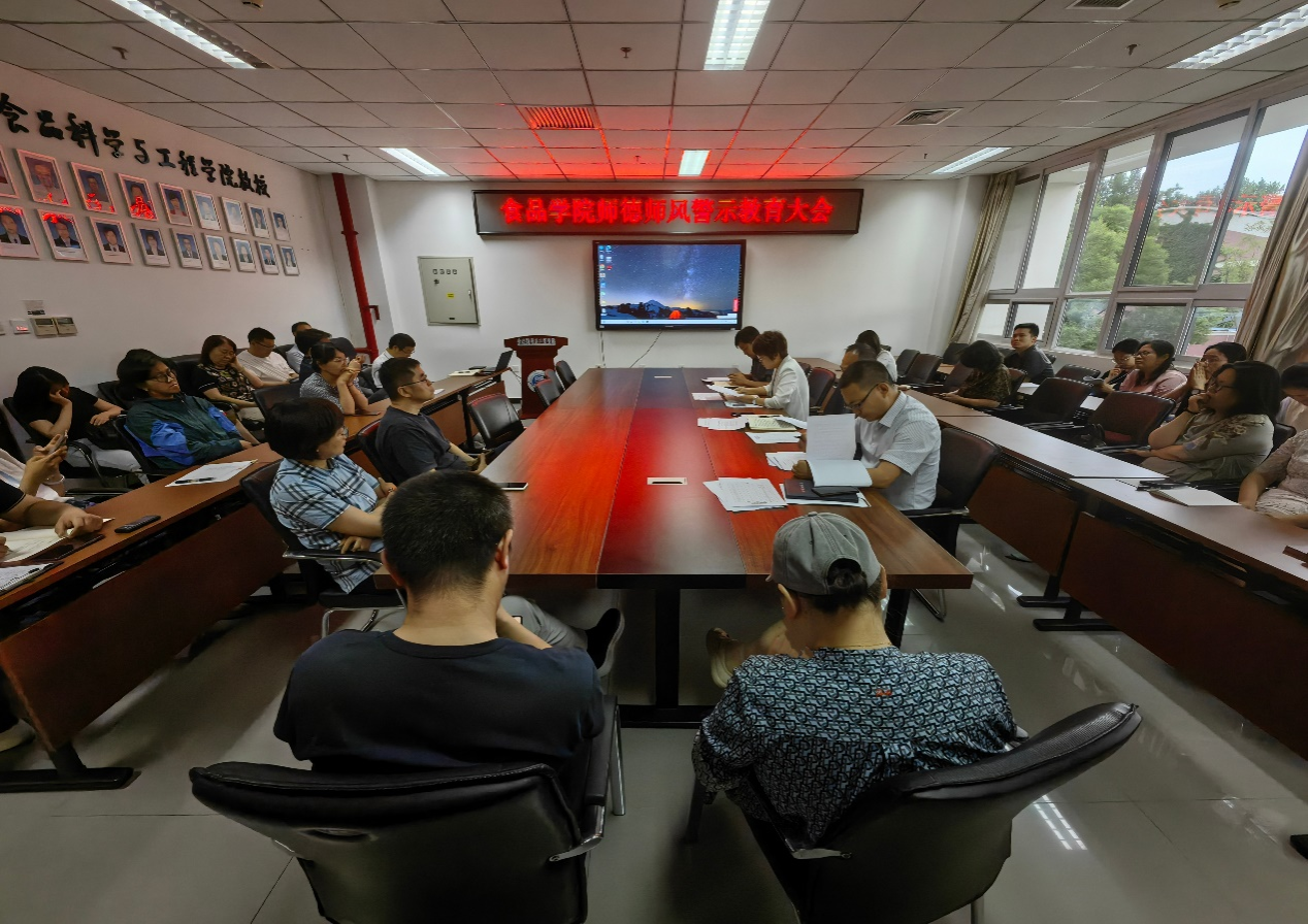 召开全体教职工大会,开展师德师风警示教育。学院党委书记靳晓熙主持会议。