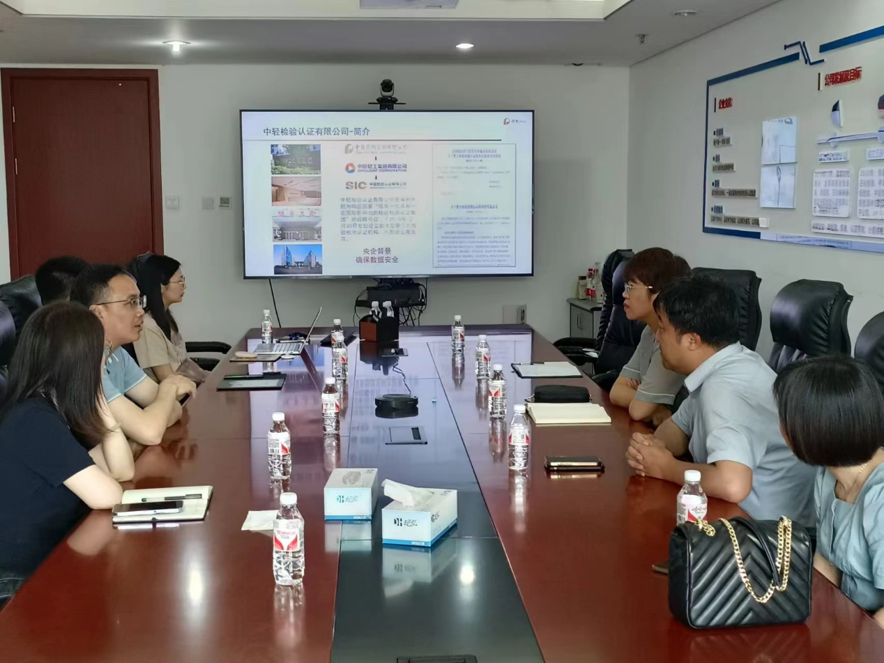 领导班子走访中轻检验认证有限公司,围绕强化校企合作,加强人才培养、学生实习实践等方面工作座谈交流。中轻检验认证有限公司副总经理王文琪、人力资源部总经理刘亚玮、部门负责人刘秀,学院党委书记靳晓熙、副院长丁轲、学生工作负责人闻海洋、食品质量与安全系副主任刘慧君参加座谈会。