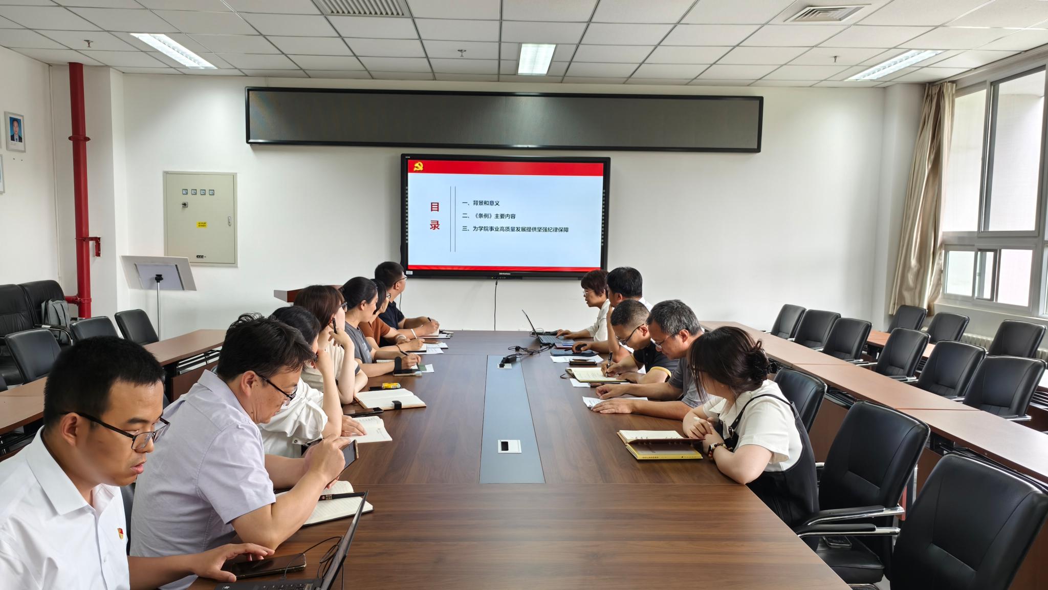 靳晓熙指出,各基层党支部要把党纪学习教育与学院中心工作、重点任务结合起来,扎实推动党纪学习教育走深走实。要引导师生党员进一步深刻认识加强纪律建设是党不断从胜利走向胜利的坚强保障,是实现新时代党的历史使命的必然要求,筑牢遵规守纪的思想根基。要自觉加强党性修养,加强师德师风建设,激励担当作为,在学纪与实干中推动本职工作,切实把党纪学习教育成果转化为推动学院事业高质量发展的强大动力。