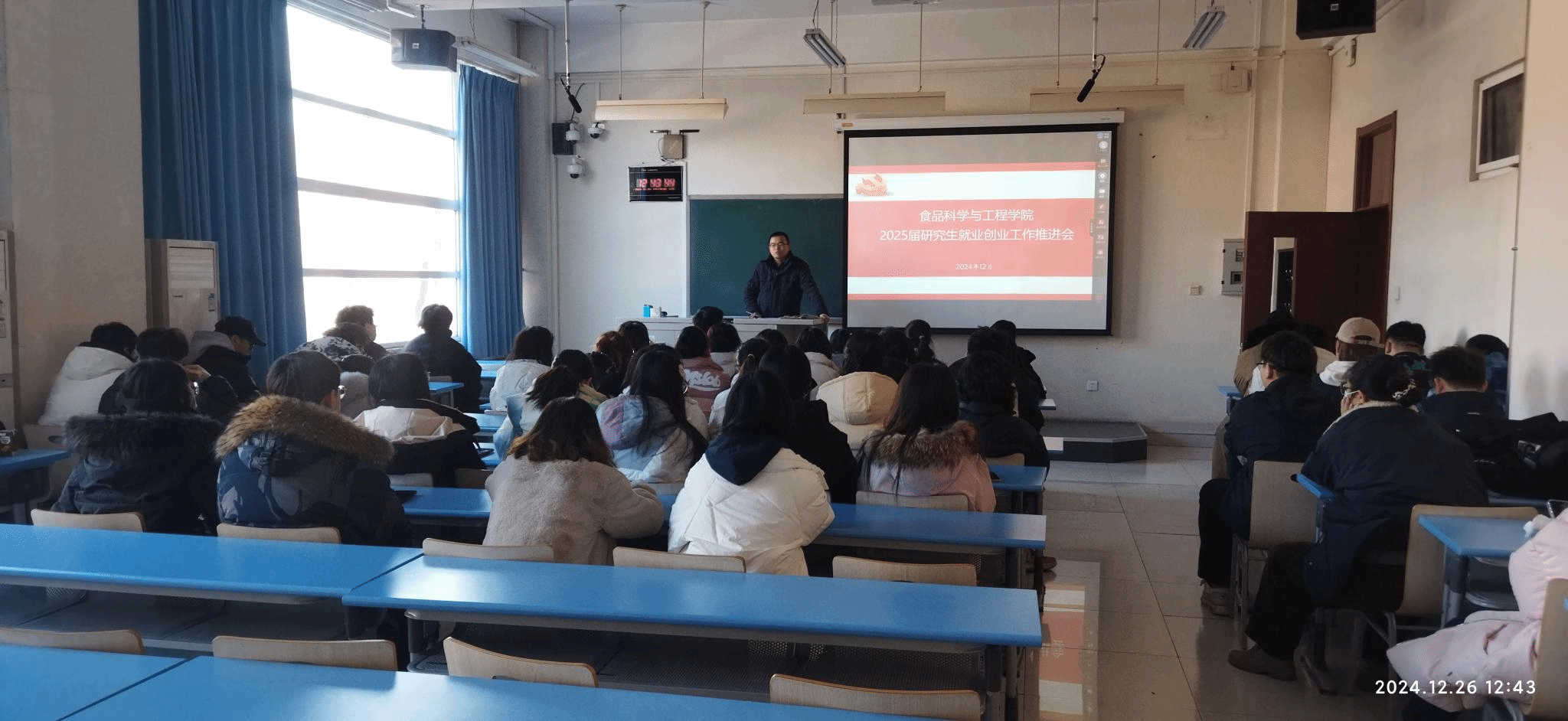 杨丰瑞结合2024届毕业生就业情况,对当前就业形势进行了深入分析。他指出,尽管近年来毕业生就业创业工作面临着新的挑战和机遇,但食品行业仍具有广阔的就业前景。研究生应积极关注行业动态,了解市场需求,无论是升学、就业还是创业,都应提前做好职业规划,比别人要早“做出动作”,早“迈出一步”。杨丰瑞还对学院研究生目前的就业状态进行了讲评,他建议同学们要加强能力提升,避免眼高手低。学生党员和学生干部要发挥先锋模范作用,其他学生要“见贤思齐”,主动出击,积极寻找实习和就业机会。