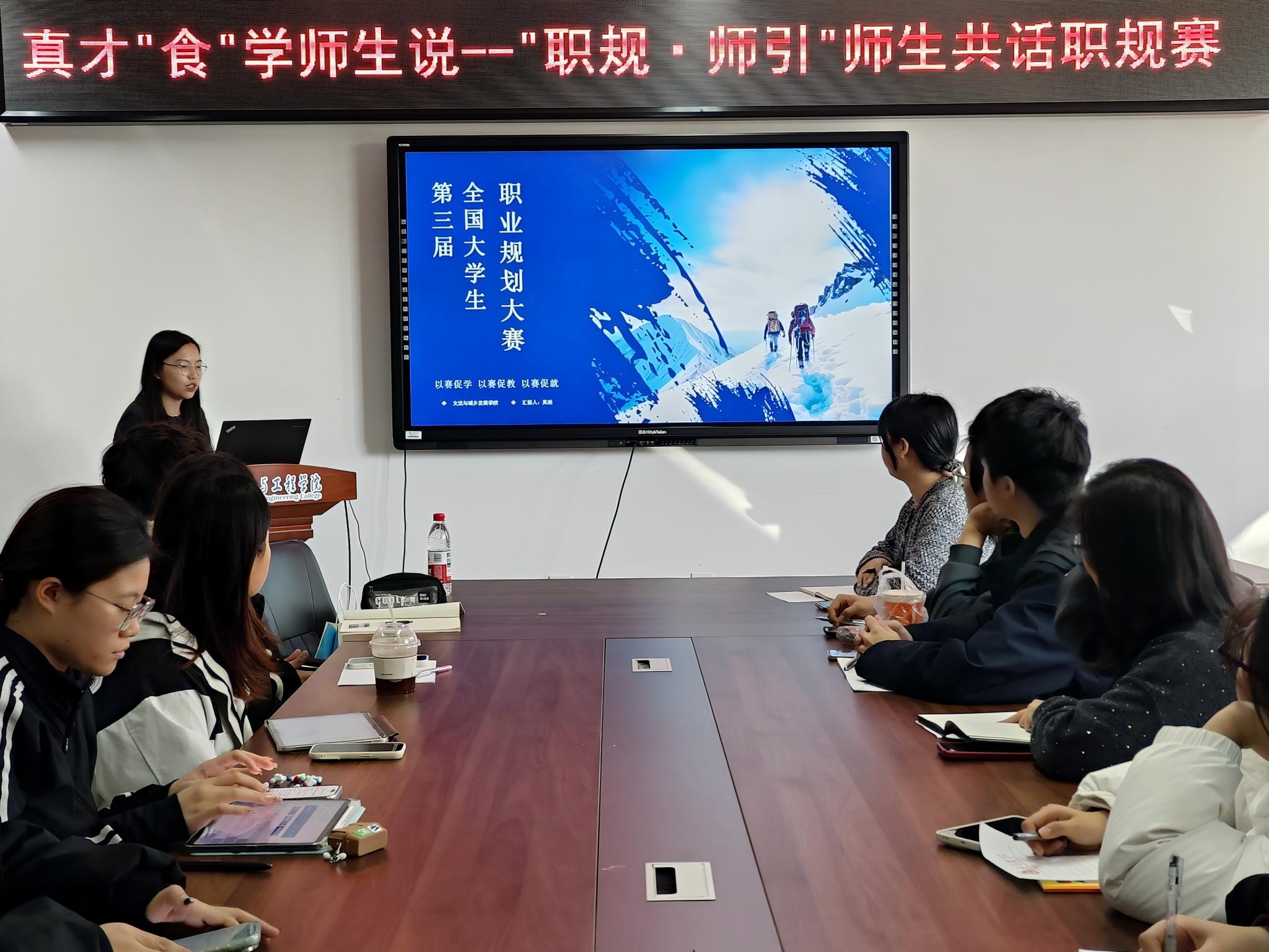 举办真才“食”学师生说——共话职规赛活动。学院特邀文发学院辅导员吴迪进行职规赛备赛指导。学院党委副书记、副院长张文娜,第三届职规赛参赛学生共同参加。辅导员官凌霄主持会议。