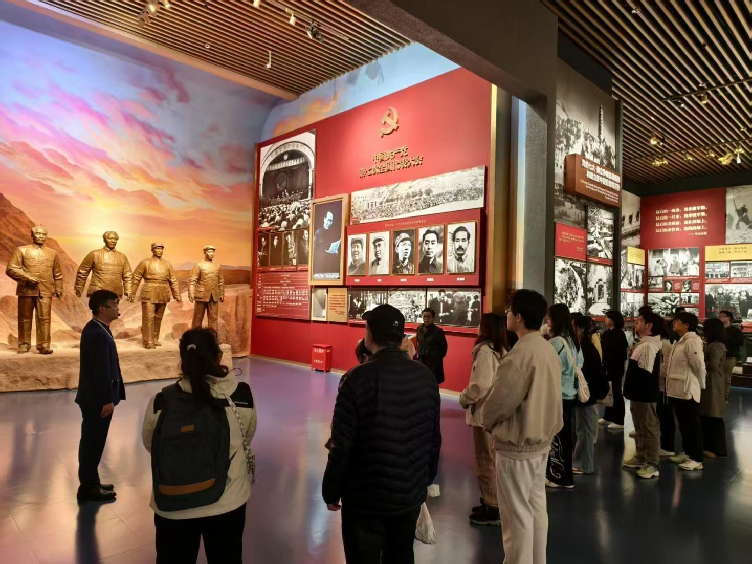 在讲解员的带领下,师生们沿着“建立中国共产党 夺取新民主主义革命伟大胜利”“成立中华人民共和国 进行社会主义革命和建设”“实行改革开放 开创和发展中国特色社会主义”“推进中国特色社会主义进入新时代 全面建成小康社会 开启全面建设社会主义现代化国家新征程”四大主题展区,开启了一场跨越百年的精神之旅。馆内珍贵的历史文物、档案资料、图像影音和精致的复原场景,记录着党的光辉历程、取得的重大成就,展现出共产党人的初心与坚守、牺牲与奉献、情怀与担当。