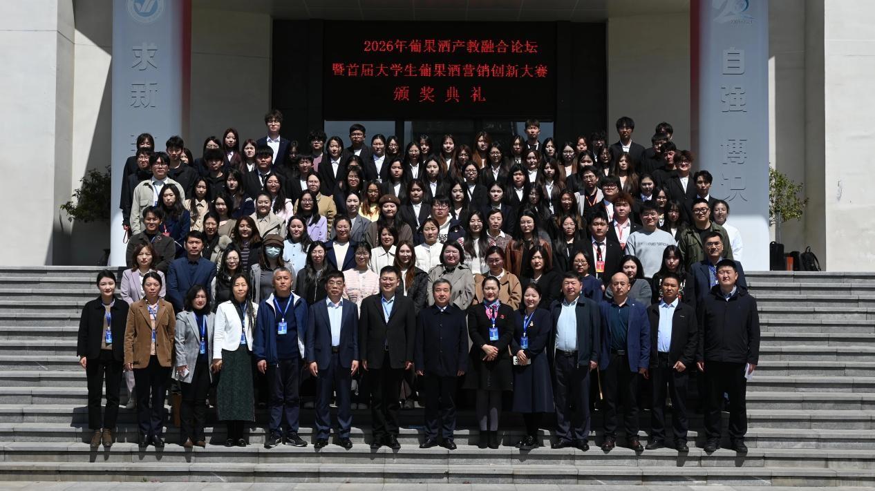 4月12日,“青春正当红·创变新未来”2026年葡果酒产教融合论坛暨首届大学生葡果酒营销创新大赛颁奖典礼在烟台理工学院举行。本次活动由中国食品工业协会葡果酒专家委员会指导,北京农学院师生代表团载誉而归,斩获多项大奖,展现了学校在产教融合与专业建设上的丰硕成果。